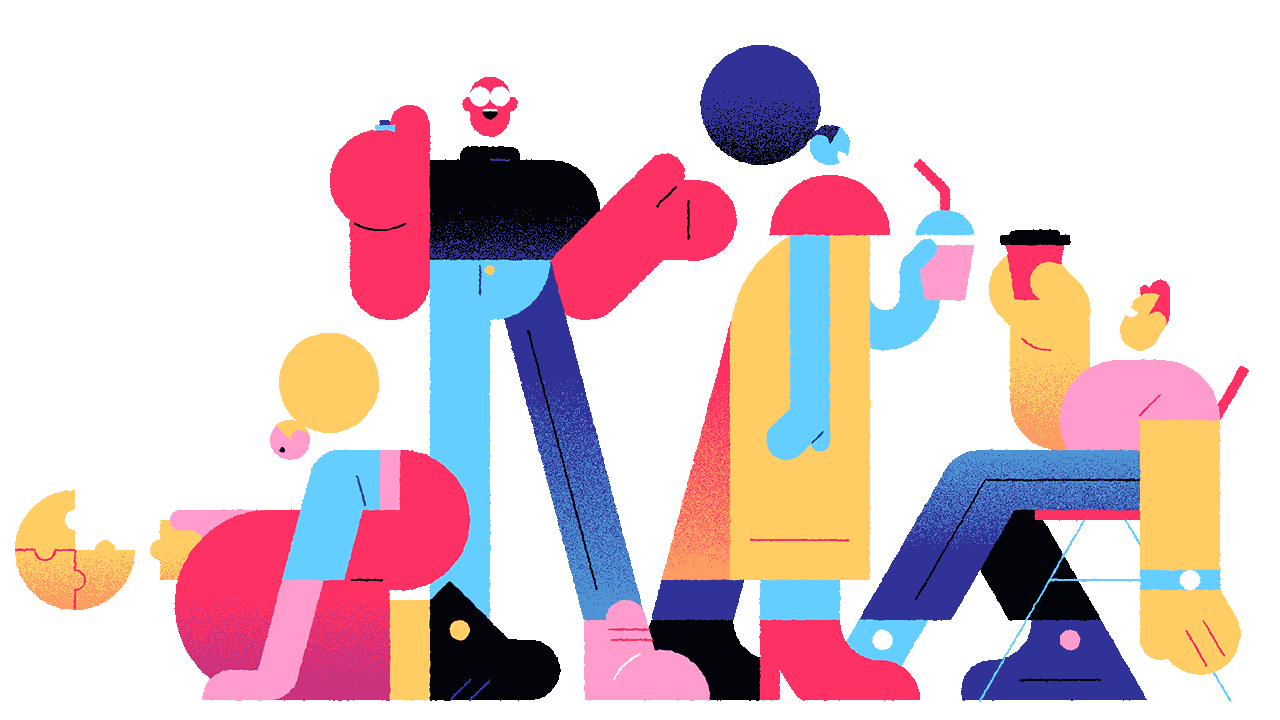 The work exists in two colourways, one for each day of the event, and is composed of three elements that can also appear separately. Each represents a different aspect of the conference: Talks, workshops, and social events.