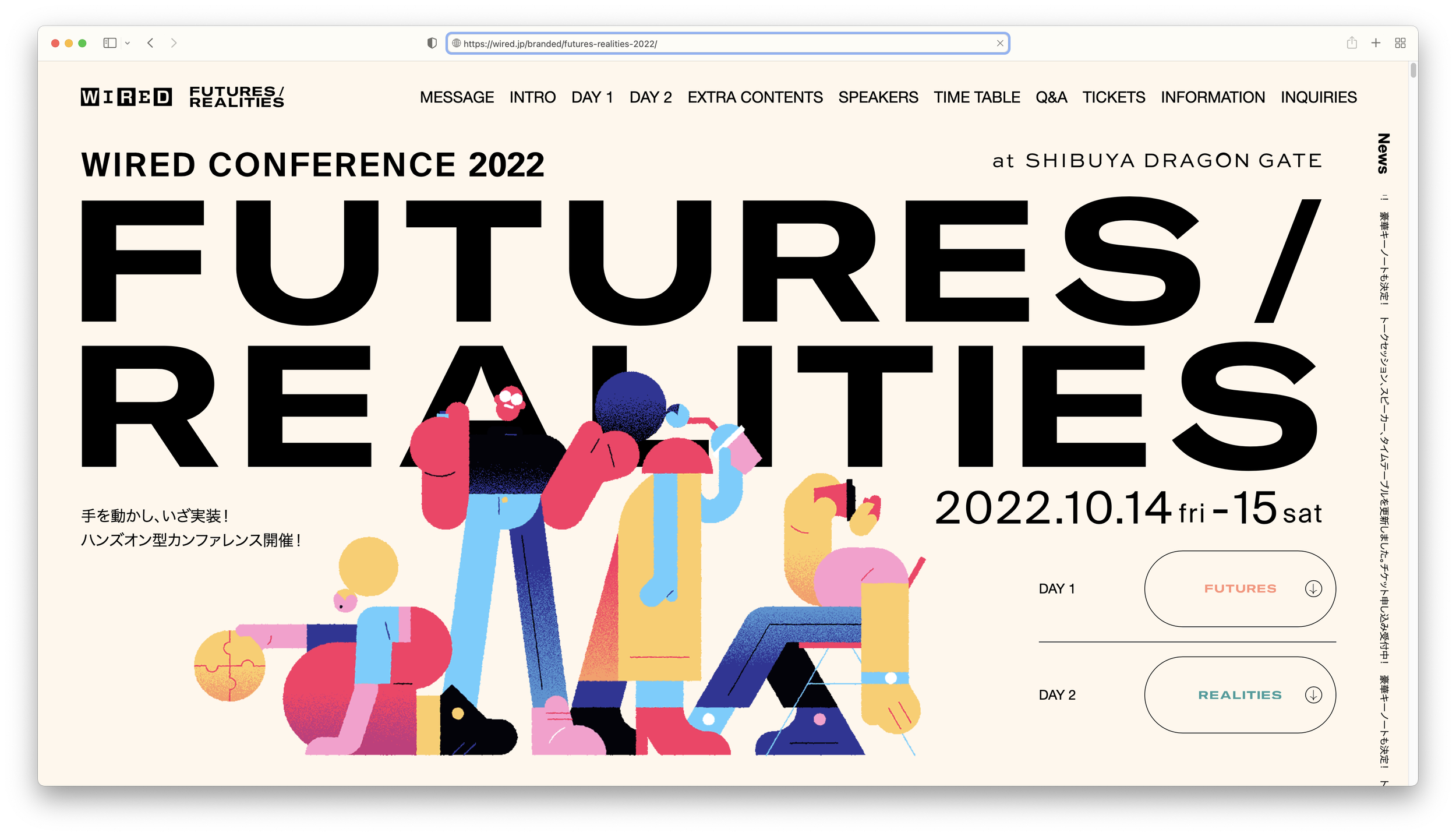 I was asked to create the key visual for Wired Japan’s 2022 conference Futures/Realities, for use in promotional materials in print and online, as well as in situ during the event.